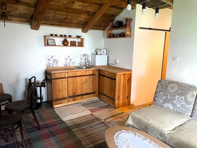 IBA U NÁS! Ponúkame exkluzívne na predaj zariadený rodinný dom/chalupu s 2 samostatnými bytovými jednotkami v Hronci. 1-izbová časť je novopostavená so samostatným vstupom a pozostáva z chodby, kúpeľne, izby spojenej s kuchyňou, pivnice a terasy. 3-izbová časť je dvojpodlažná so samostatným vstupom a na prvom podlaží je chodba, kuchyňa, kúpeľňa, obývačka s krbom a v podkroví sú 2 izby a šatník. Rodinný dom je odizolovaný a prestrešený novou plechovou strechou Maslem so zateplením Nobasil hr. 30 cm, komín je vyvložkovaný. Zrekonštruovaná je tiež voda, odpad a medená elektrika. Kúrenie v obidvoch častiach zabezpečuje nový plynový kotol s prietokovým ohrevom vody. Dom je napojený na vodu, elektrinu 220 aj 400 V, plyn, kanalizáciu a internet. Pri dome je parkovisko pre 2 autá. Popri rovinatom pozemku s rozlohou 671 m2 preteká potôčik. Dom je ideálny na bývanie, aj na prenajímanie. Obec Hronec sa nachádza v krásnom horskom prostredí s množstvom možností na oddych. Pár km sa nachádza znále biatlonové stredisko Osrblie a lyžiarske strediská Tále a Mýto pod Ďumbierom. Energetický certifikát nie je vystavený. Nehnuteľnosť je vedená pod evidenčným číslom: 3855 Všetky podrobné informácie ako aj obhliadku nehnuteľnosti zabezpečuje Ivka Kamenská. Kontakt: 0905 825 595 alebo 0903 246 649