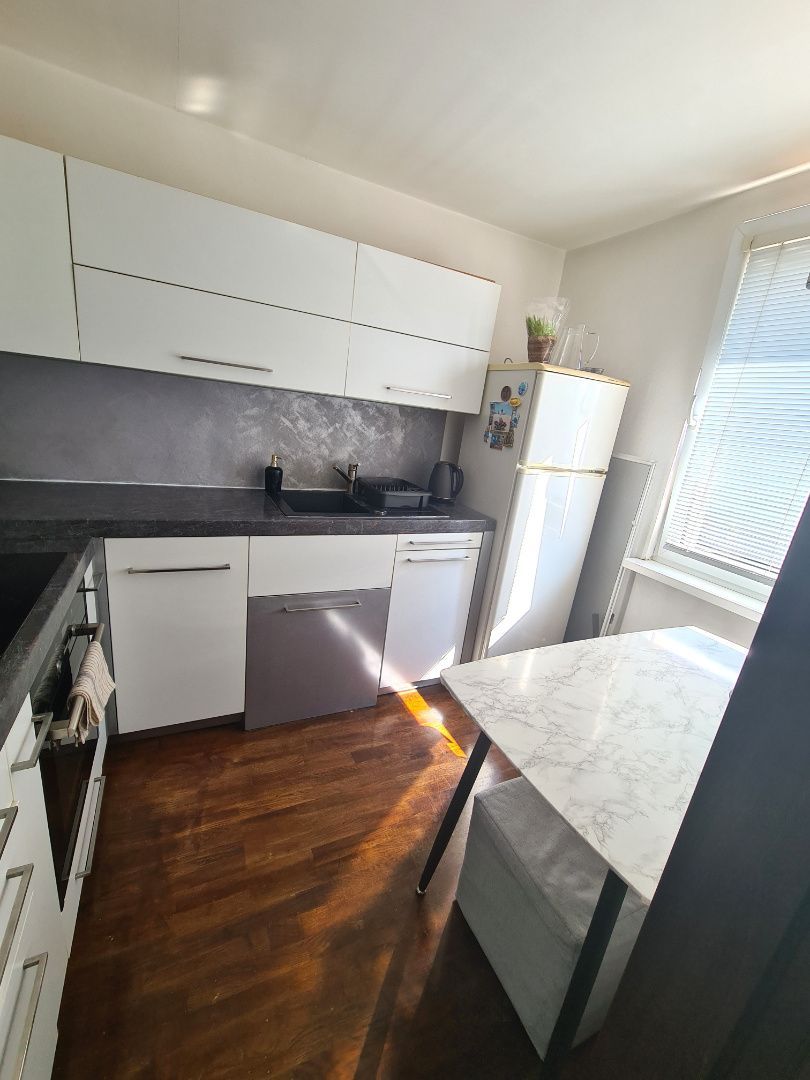 Ponúkam Vám na prenájom (dlhodobo) 1-izbový byt (typ bytu bauring) v Banskej Bystrici, v mestskej časti Fončorda, na Tulskej ul. č. 26, na 7. poschodí v deväť poschodovom bytovom dome, orientovaný na juhozápad s nádherným výhľadom do diaľky (oproti nie je žiadna vyššia stavba). Nehnuteľnosť je po kompletnej, vkusnej rekonštrukcii: plastové okná so žalúziami a sieťkami proti hmyzu, drevené masívne podlahy jednotné v celom byte, stierky biele aj stropy, nové interiérové drevené posuvné dvere do kuchyne, obývačky a do kúpeľne, vstavaná skriňa na mieru v chodbe, kuchynská linka je biela do tvaru L so zabudovanými spotrebičmi - umývačka riadu Siemens, indukčná varná doska Siemens, el. rúra Siemens, digestor, granitový drez, samostatná chladnička s mrazničkou, mikrovlnka, kuchynský stôl s taburetkou. Kúpeľňa je murovaná. zrekonštruovaná, so sprchovým kútom, WC Geberit, práčka ostáva. Obývačka (denná miestnosť) je oddelená od nočnej časti. Nové sú aj rozvody elektriky, vody, odpadov. Stúpacie rozvody v bytovom dome boli menené za nové. Byt pôsobí veľmi dobrým dojmom, má dostatok denného svetla, je zrekonštruovaný, čistý, vkusne zariadený. Byt je praktický jeho dispozíciou, aj keď jeho rozloha nie je veľkorysá. Súčasťou bytu je aj pivnica v technickom podlaží bytového domu. Bytový dom je komplet zrekonštruovaný, zateplený, zrekonštruované sú aj spoločné priestory, má nový priestranný výťah, disponuje kamerovým systémom, o čistotu spoločných priestorov sa stará upratovacia spoločnosť. Parkovacie možností v blízkosti bytového domu sú veľmi dobré. Fončorda je vyhľadávaná lokalita, s kompletnou občianskou vybavenosťou, dobrou dostupnosťou do centra. Aj do prírody sa viete dostať za pár minút. Požiadavky pre nájomcu: 1-2 dospelé osoby s pravidelným príjmom, čistotnosť, zodpovednosť, domáci miláčikovia dohodou. Platobné podmienky: 550€ mesačný nájom (v cene nájmu sú aj energie, internet +TV), 550€ vratný depozit, 550€ poplatok RK. V prípade otázok a dohodnutia obhliadky ma môžete kontaktovať kedykoľvek 24/7. Energetický certifikát zatiaľ nie je vystavený. Nehnuteľnosť je vedená pod evidenčným číslom: 3571 Všetky podrobné informácie ako aj obhliadku nehnuteľnosti zabezpečuje Katarína Kubincová. Kontakt: 0907 842 785, 0903 246 649