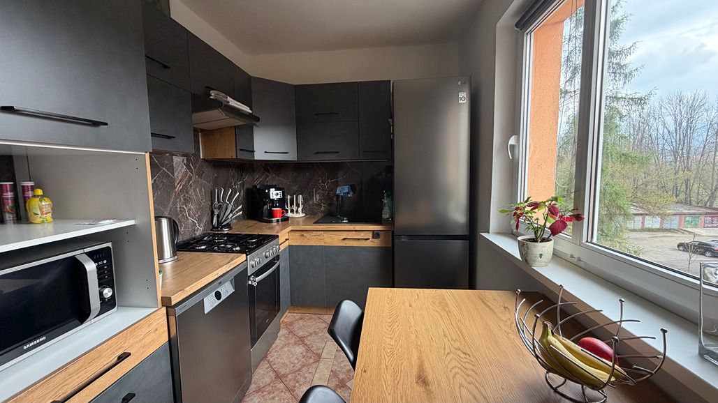 Hľadáte dokonalý rodinný štart v najobľúbenejšej časti Banskej Bystrice? Ponúkam Vám na predaj veľmi pekne zrekonštruovaný 3-izbový byt (typ bytu MS11) vo vynikajúcej lokalite v Banskej Bystrici, v časti Fončorda, na ulici Švermová 1822/25. Švermova ulica je v Banskej Bystrici dlhodobo považovaná za jednu z najprestížnejších a najobľúbenejších adries. Spája totiž presne to, čo ľudia hľadajú – pokoj sídliska Fončorda a pritom pešiu dostupnosť priamo do historického centra. Výmera bytu s príslušenstvom (murovanou pivnicou) je 65m2 plus balkón z obývačky. Nachádza sa na 3. poschodí v 10 poschodovom bytovom dome. Orientácia bytu je nasledovná: kuchyňa a obývačka je na Východ a 2 izby sú na Juh. Popis a dispozícia bytu: Okná sú plastové so žalúziami Deň a Noc a na oknách sú sieťky proti hmyzu (sieťky okrem kuchyne). Podlahy v izbách sú jednotné laminátové. V chodbe a kuchyni je staršia keramická dlažba, ktorá je v dobrom stave. Celý byt má stierky (aj stropy) v bielom prevedení. V roku 2024 sa rekonštruovala kúpeľňa, ktorá je s vaňou. WC je samostatné. Kuchynská linka je nová do tvaru L. Varenie je na plyne a k tomu el. rúra. Súčasťou kuchynskej linky je granitový drez, široká umývačka riadu, digestor, chladnička s mrazničkou. Na chodbe je dosť úložného priestoru. Nachádza sa v nej vstavaná skriňa na mieru a tak isto vešiaková zostava s botníkom na mieru. Interiérové dvere sú s obložením zárubní a vchodové bytové sú nové bezpečnostné. V byte je optika O2 (internet +TV), ale sú aj ďalšie možnosti optiky podľa výberu. Náklady: plyn 10€ mesačne (preplatky), elektrika 30€ mesačne, Bythos 213€ (preplatky), byt užívajú 3 osoby. Parkovacie možnosti sú na prístupových a priľahlých komunikáciách, v širšom okolí sú aj viaceré parkoviská. Bytový dom je panelový, postavený v roku 1964. V roku 2011 sa zatepľoval a v tom období sa robila aj nová hydroizolácia strechy s tepelnou izoláciou. V roku 2017 bol osadený nový výťah s nosnosťou 630kg pre 8 osôb.Stúpacie rozvody sú taktiež nové. Tento rok sa plánuje modernizácia schodísk a výmena poštových schránok. Byt je voľný dohodou. Predávame byt na adrese, ktorá definuje komfortné mestské bývanie. Švermova ulica je strategickým bodom, z ktorého sa do 10-15 minút pešou chôdzou dostanete kamkoľvek potrebujete. • Centrum a nákupy na dosah: Europa Shopping Center (ESC): Najväčšie nákupné centrum v regióne máte doslova pár minút od domu (cca 2 minúty autom alebo krátka prechádzka). Kino, kaviarne a obchody sú tak súčasťou vášho „dvora". Historické centrum (Námestie SNP): Príjemnou prechádzkou ste v srdci mesta do 15 minút. • Šport a oddych (Doslova cez cestu): Mestská plaváreň a Štiavničky: Ak radi plávate alebo športujete, bazén a vynovený atletický štadión máte priamo „pod oknami". Plážové kúpalisko Aqualand: V lete oceníte blízkosť kúpaliska, kam sa v horúcich dňoch vyberiete s osuškou cez plece za pár minút. • Kompletná občianska vybavenosť: Vzdelanie: V tesnej blízkosti sa nachádzajú materské školy, základné školy a prestížne gymnáziá, čo z tejto lokality robí ideálne miesto pre rodiny. Zdravie a služby: Lekárne, zdravotné strediská a banky sú v pešej dostupnosti. • Doprava: Lokalita má vynikajúce napojenie na mestský okruh a diaľnicu R1. Zastávky MHD sú rozmiestnené tak, že sa pohodlne spojíte so všetkými časťami mesta. Zelené prostredie a výhľady: Švermova ulica je známa tým, že je tu množstvo vzrastlej zelene. Lokalita ponúka krásne výhľady na panorámu Nízkych Tatier, Kalváriu alebo vežičky historického centra. V prípade otázok a dohodnutia obhliadok ma môžete kontaktovať 24/7. Ak Vám nezdvihnem telefón hneď, určite Vám zavolám hneď ako to bude možné. Vieme Vám poradiť aj s financovaním tejto nehnuteľnosti spolupracujeme so znalcami, všetkými bankami, stavebnými sporiteľňami, poisťovňami. Máme viac ako 25 ročné skúsenosti. Energetický certifikát - v príprave. Do kúpnej ceny je zahrnutá aj odmena realitnej kancelárie. Nehnuteľnosť je vedená pod evidenčným číslom: 3897 Všetky podrobné informácie ako aj obhliadku nehnuteľnosti zabezpečuje Katarína Kubincová. Kontakt: 0907 842 785, 0903 246 649