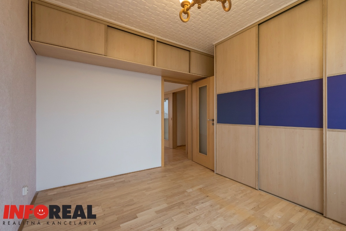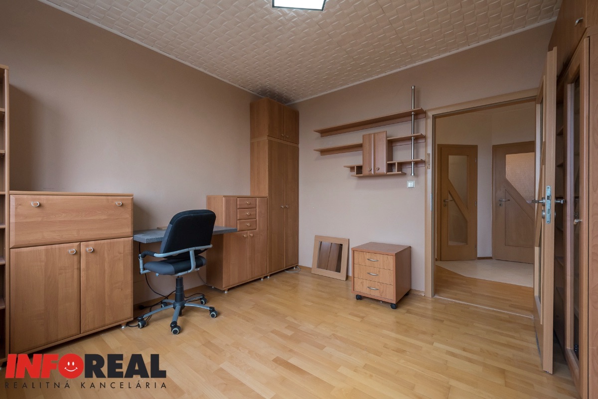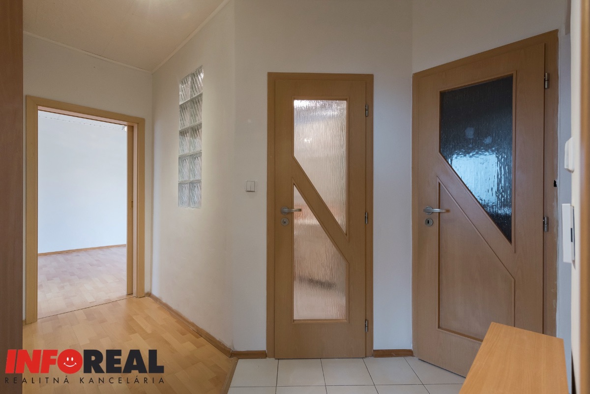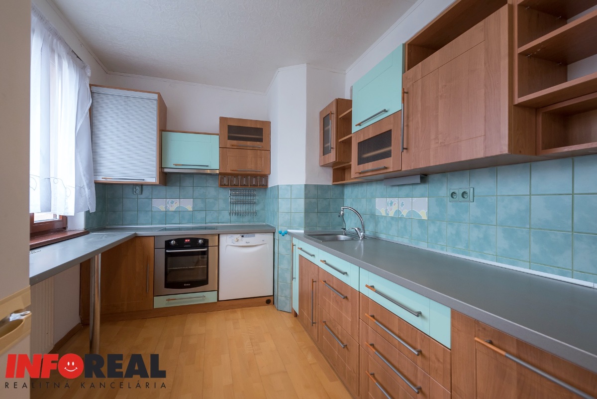 Ponúkame na predaj veľmi pekne a kvalitne rekonšturovaný 4 izb. byt vo výmere 78 m2 a loggiou 3 m2. BYT JE PO KÚPE OKAMŽITE VOĽNÝ. Nachádza sa na 8 poschodí v 8 poschodovom bytovom dome s novým výťahom. Byt je na najvyššom poschodí, čo zabezpečuje súkromie a žiadne dupanie od vrchných susedov.. Rekonštrukcia bytu zahŕňala: - plastové okná (v izbách) a EUROokná v kuchyni a obývačke - murované bytové jadro s vymenenou elektroništaláciou, vodou a odpadom, v izbách je pôvodná elektroinštalácia (postačujúca, keďže je nižší odber ako v kuchyni a jadre) - v kúpelni nová sanita, VAŇA a SPRCHOVACÍ KÚT, samostatné WC, kúelňový nábytok, obklady a dlažby - Drevené interérové dvere, otváracie a posuvné (šetrenie priestoru) - Kuchynská linka na mieru so zabudovanými spotrebičmi: elektrická rúra, indukčná varná doska, umývačka riadu (60cm), digestorr - DREVENÉ PODLAHY v byte - veľmi kvalitné, nutnosť čiastočných opráv - ponechané pôvodné liatinové radiatoy, keďže dokonale vyhrievajú - drevené bchodové dvere so zárubňou Rekonštrukcia bytového jadra a zvyšku bytu prebehla v roku 2004 / 2005, indukšná varná doska 2014, opravy stien 2019. Byt je dostatočne teplý a presvetlený, orientovaný SV / JZ s nádherným výhľadom na celé Košice. Bytový dom je kompletne rekonštruovaný, t.j. zateplenie v rroku 2010, následné rekontrukcie strechy, spoločných priestorov a výťahu 2018. NÍZKE MESAČNÉ NÁJOMNÉ (platba spojená s užívaním bytu) vo výške 156 Eur / mes. Možnosť kúpy bytu aj s nábytkom, ktorý je na fotografiiách. Občianska vybavenosť a okolie: - kompletná občianska vybavenosť v okolí (potraviny, školy, škôlky, lekári, obchodný dom, potraviny, cca 5 min pešo ...) Realitná kancelária INFOREAL RK, s.r.o. sprostredkováva predaj prostredníctvom zastúpenia klienta. Fotografie sú autorským dielom a majetkom realitnej kancelárie. Viac informácií INFOREAL PLUS s. r. o. Vodná 3,Košice Mobil: 0915 715 115 kovalcik@inforeal.sk