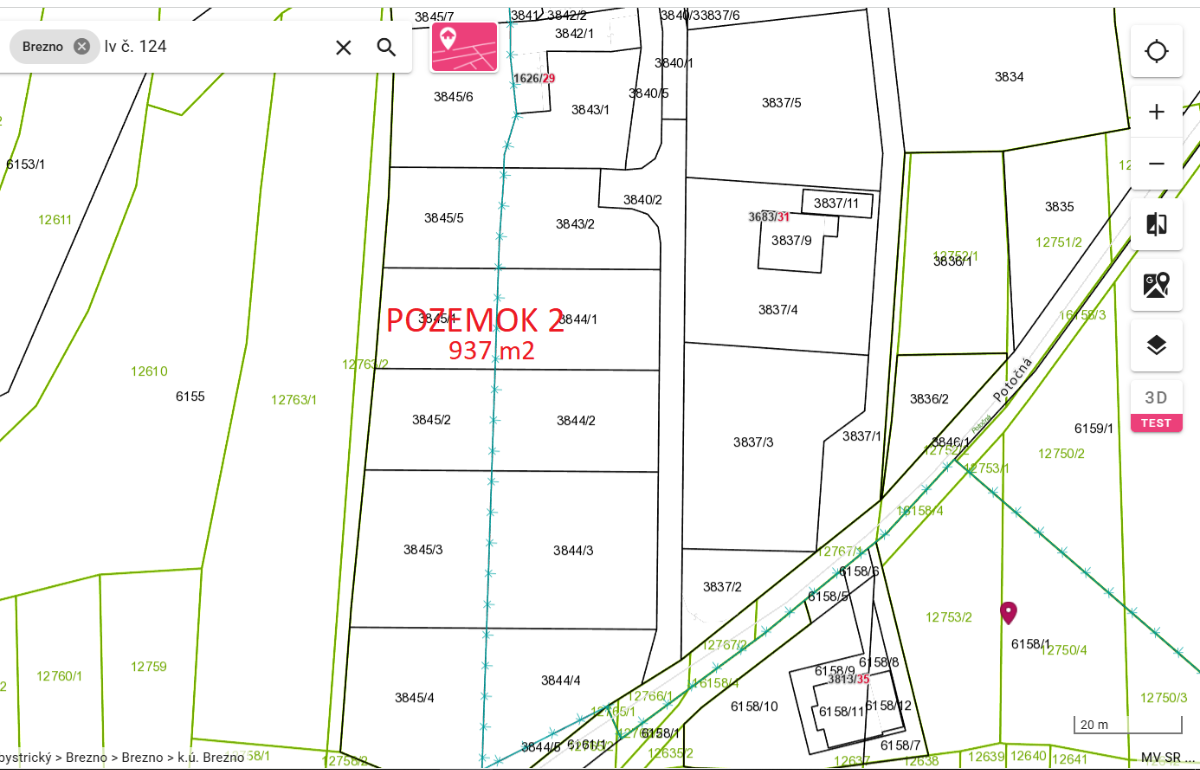 Lukratívny stavebný pozemok 937 m2 - Potočná v Brezne - Starý Mazorník