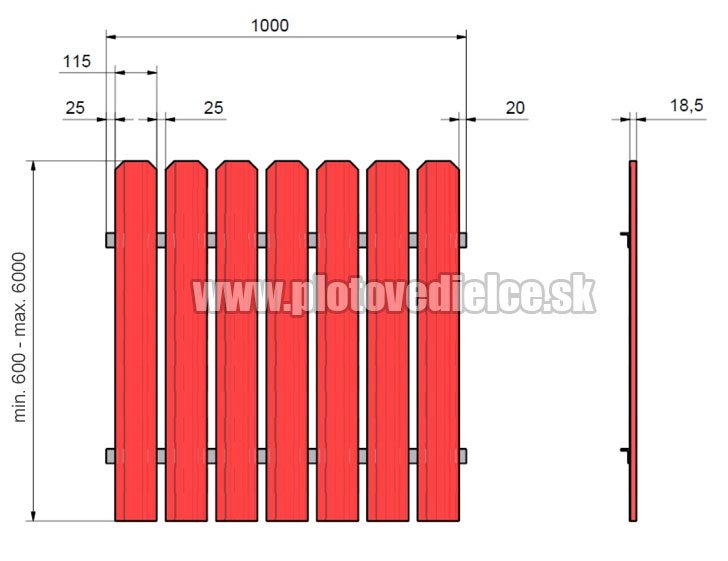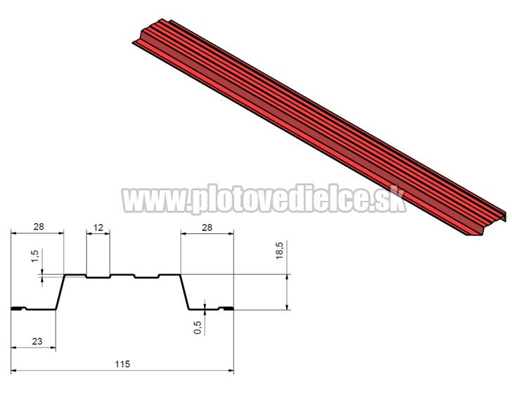 Predám plechové plotové dielce (plechové lamely, plotovky). Krycia šírka dielcov 115 mm, dĺžka: od 600 až do 6000 mm (podľa potreby). Hrúbka plechu: 0,5 mm. Na 1 bežný meter bezúdržbového plotu budete potrebovať 7 ks plotových dielcov (medzery so šírkou 25 mm). Povrchová úprava: pozink, lesklé alebo matné fareby, imitácia textúry dreva. Cena plotoviek od 1,30 EUR/bm. Doručenie kamkolvek po Slovensku (cena dohodou).