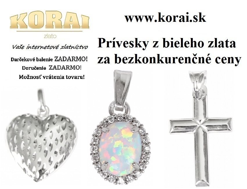 Krásne prívesky zo 14 karátového bieleho zlata za bezkonkurenčné ceny nájdete v našom internetovom obchode so šperkami KORAI. Srdiečka, krížiky, platničky, kameňové prívesky, prívesky s náboženskými motívmi a mnohé iné nájdete v našom internetovom obchode so šperkami KORAI. Navštívte e - shop KORAI a zaručene si vyberiete. Internetové zlatníctvo KORAI. Online šperky KORAI.